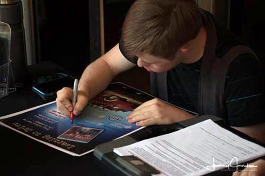 Always the trooper (and self promoter), award-winning actor and renown self-advocate Connor Long autographed posters for fans and co-sponsors of the event!