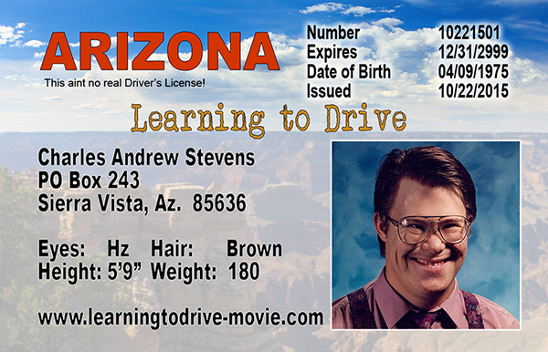 A 11"x17" Promotional Poster, signed by star Connor Long and Director Roderick E. Stevens II. Ships rolled in a tube. Personal LTD "Drivers License"![]() Email us your favorite driver's photo and relevent information and we'll create and laminate a personalized "Learning to Drive" Drivers License! $50!Allow up to 4 weeks from the time we receive your photo and information for delivery. |